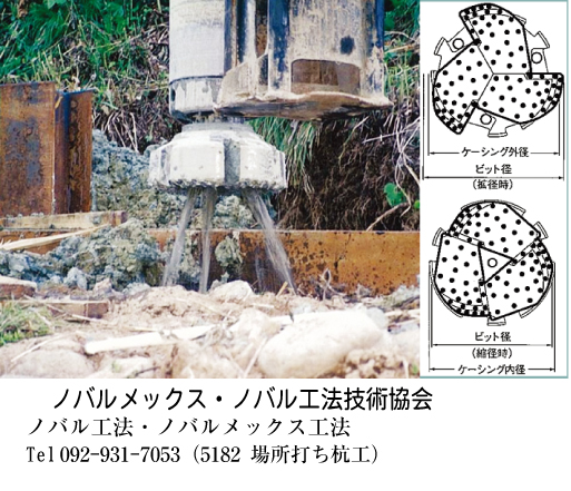 1.効率のよい削孔機構(スクリュー排土タイプ)2.高い品質管理(先端グラウド注入タイプ)