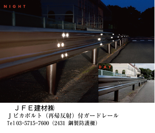 Jピカボルト(再帰反射)付ガードレール