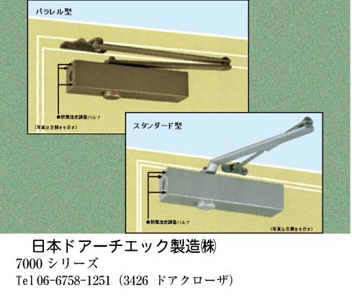 ドアクローザ,フロア・ピボットヒンジ,オートパワーヒンジ,引戸クローザ,スプリングヒンジ,防災機器