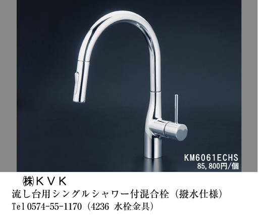 流し台用シングルシャワー付混合栓(撥水仕様)