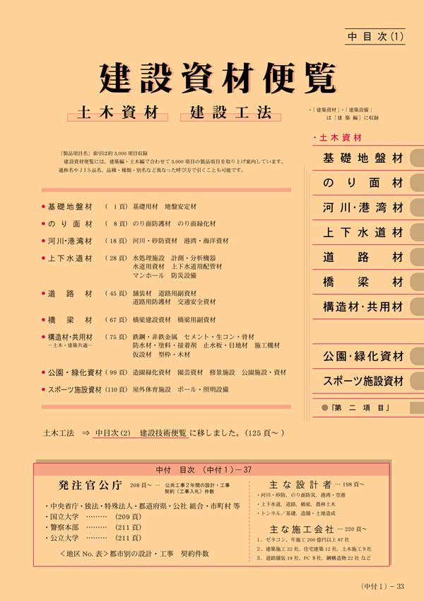 建設資材便覧 中目次(見本1)