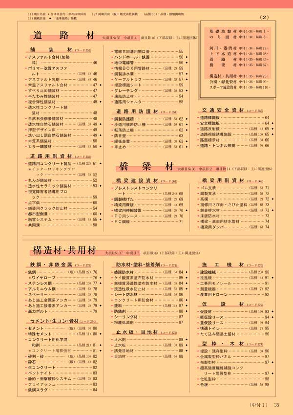 建設資材便覧 中目次(見本3)