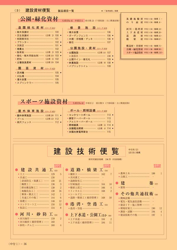>> 建設資材便覧 中目次(見本4)