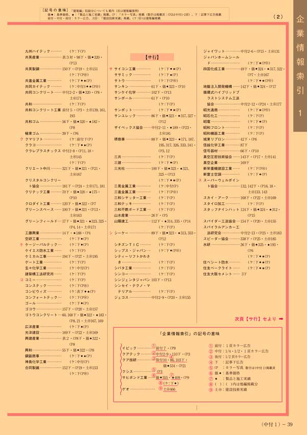 >> 建設資材便覧 企業情報索引(見本2)