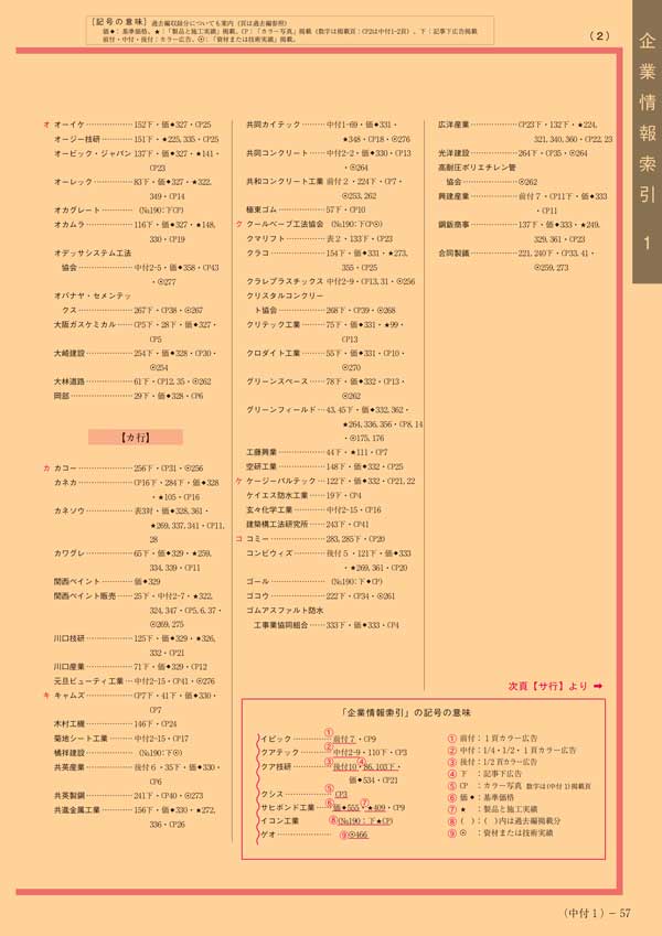 >> 建設資材便覧 企業情報索引(見本2)