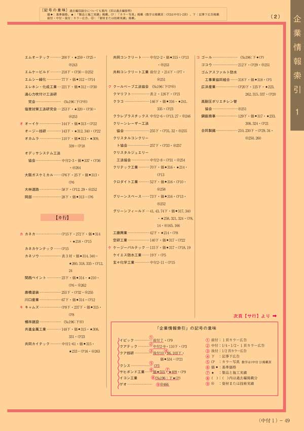 >> 建設資材便覧 企業情報索引(見本2)
