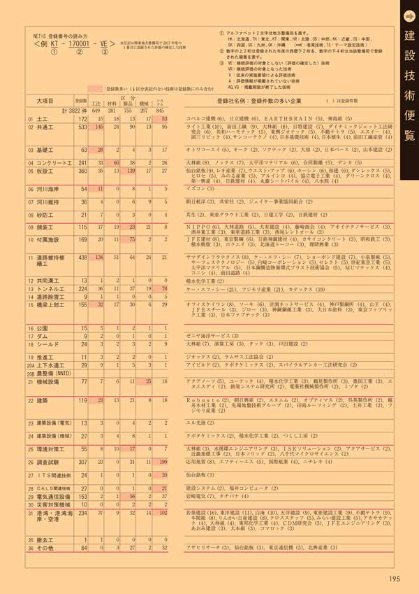 >> 建設技術便覧 「NETIS」登録状況一覧(見本3)