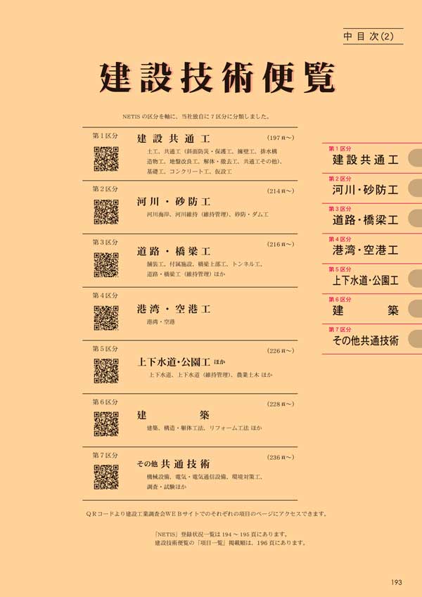 建設技術便覧 中目次(見本1)